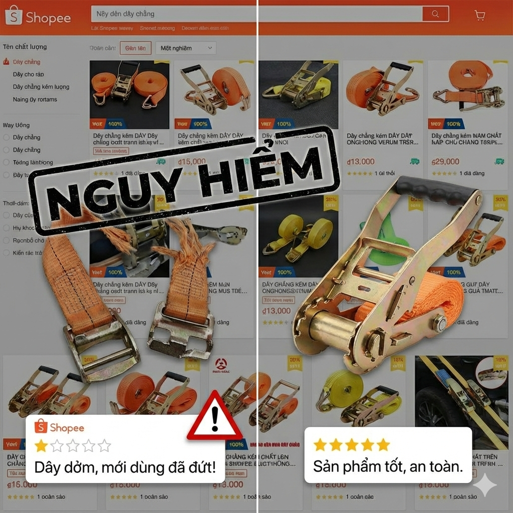 Không ít chủ xe tải, chủ xưởng hoặc người chơi xe bán tải từng giật mình khi nhìn thấy mức giá “siêu hời” 70.000 – 120.000 đ cho một bộ dây chằng hàng tăng đơ trên các sàn thương mại điện tử. Thế nhưng, rất ít người biết đằng sau những con số hấp dẫn ấy là những rủi ro tiềm ẩn có thể khiến chuyến hàng đổ bể, tài sản bị hỏng, thậm chí đe dọa tính mạng trên đường. Bài viết sau sẽ phân tích vì sao bạn tuyệt đối không nên vội vàng đặt mua dây tăng đơ siêu rẻ trôi nổi